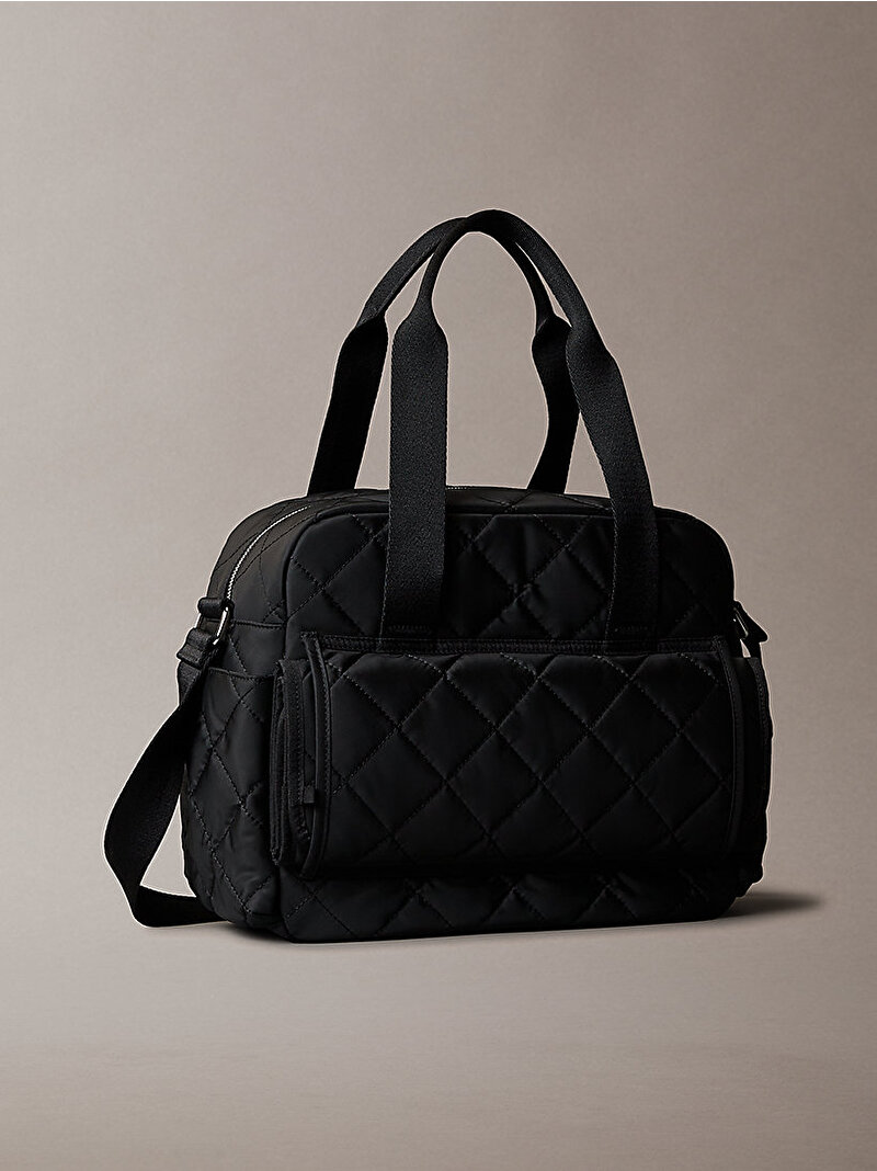 Şık ve işlevsel; bu yumuşak kapitone bebek bakım çantası, bebeğin ihtiyaçlarını saklamak için çok sayıda cebe ve hareket halindeyken kolaylık sağlayan bir alt değiştirme matına sahiptir.