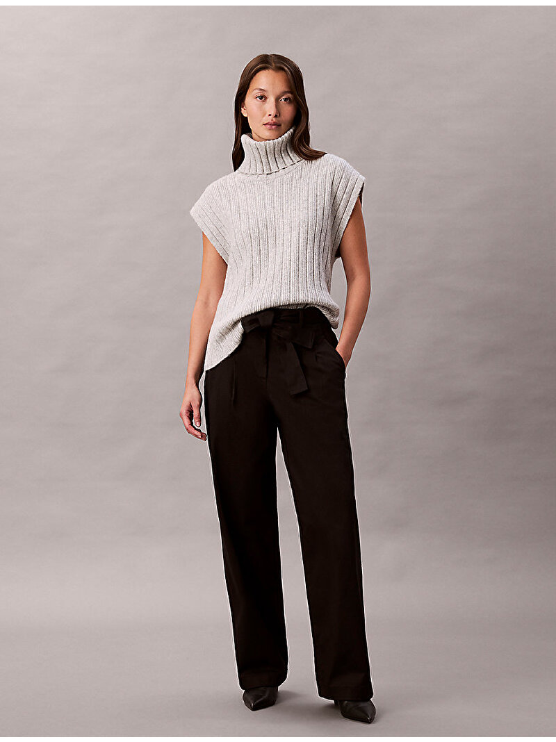 kadın cotton twill belted pantolon