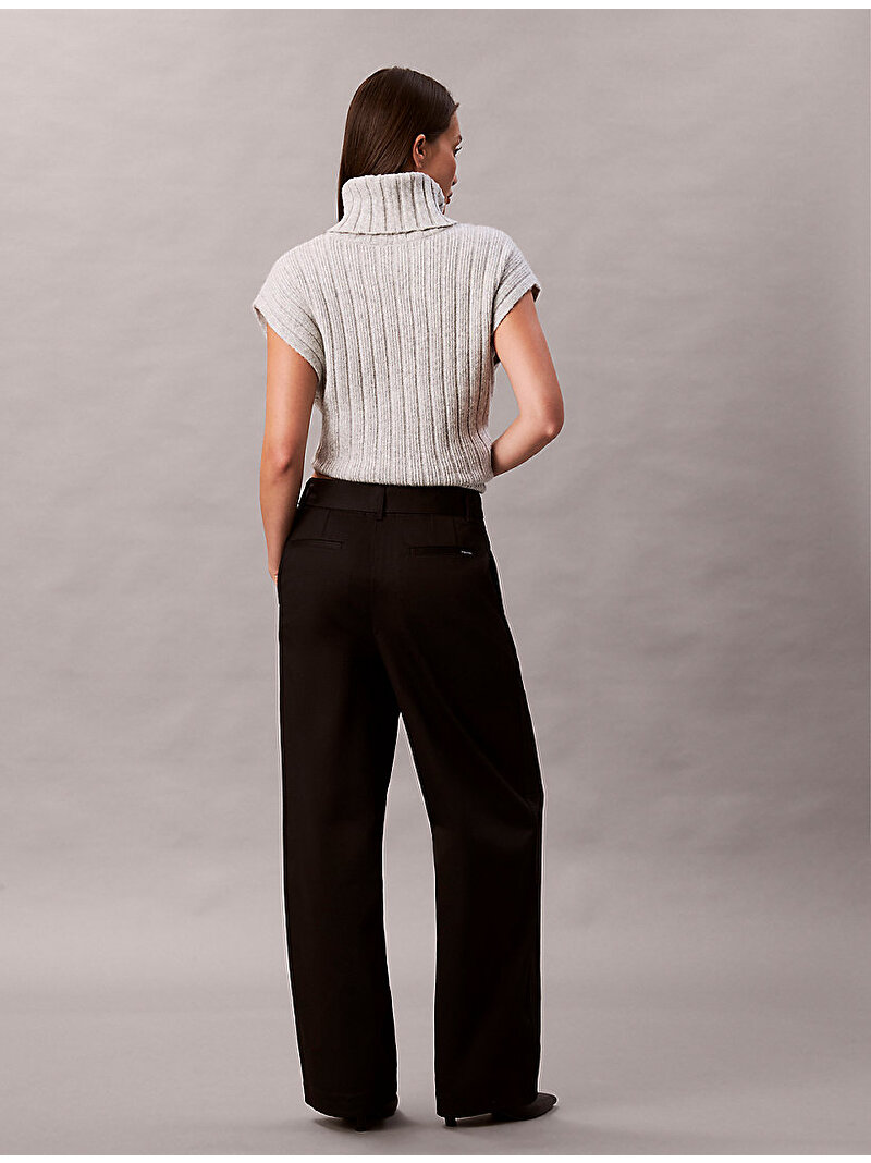 Zahmetsiz ama şık. Yumuşak pamuklu dimi kumaştan tasarlanan bu pantolon, kemerli bele ve rahat bir kesime sahiptir.