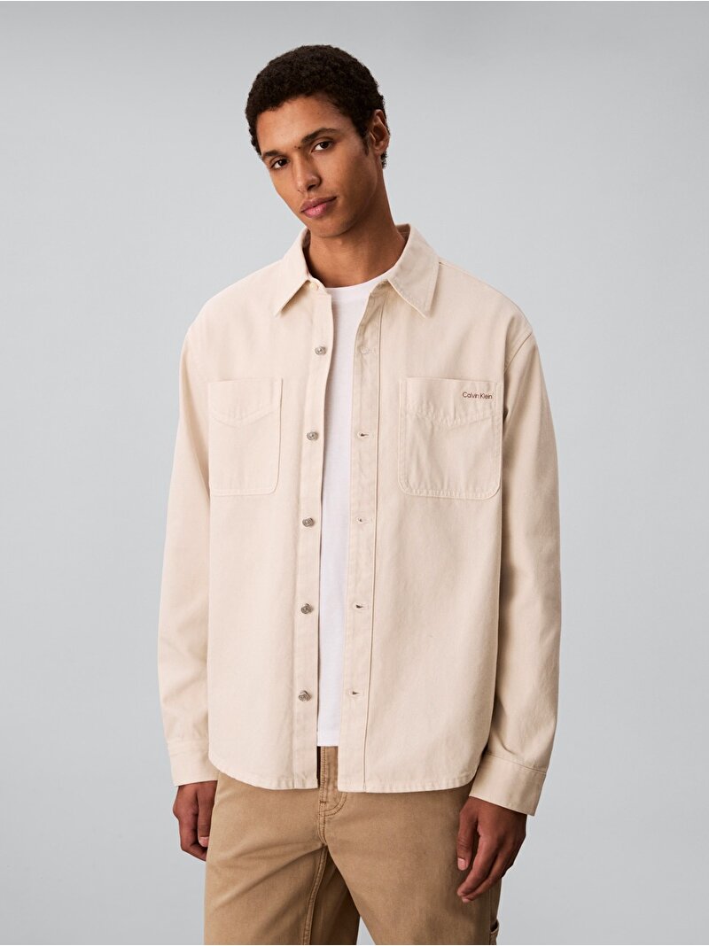 erkek 90s washed bone overshirt gömlek
