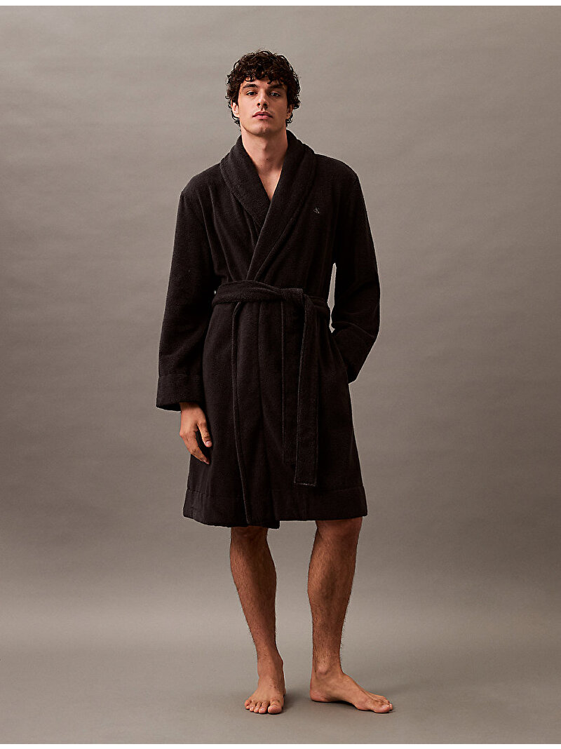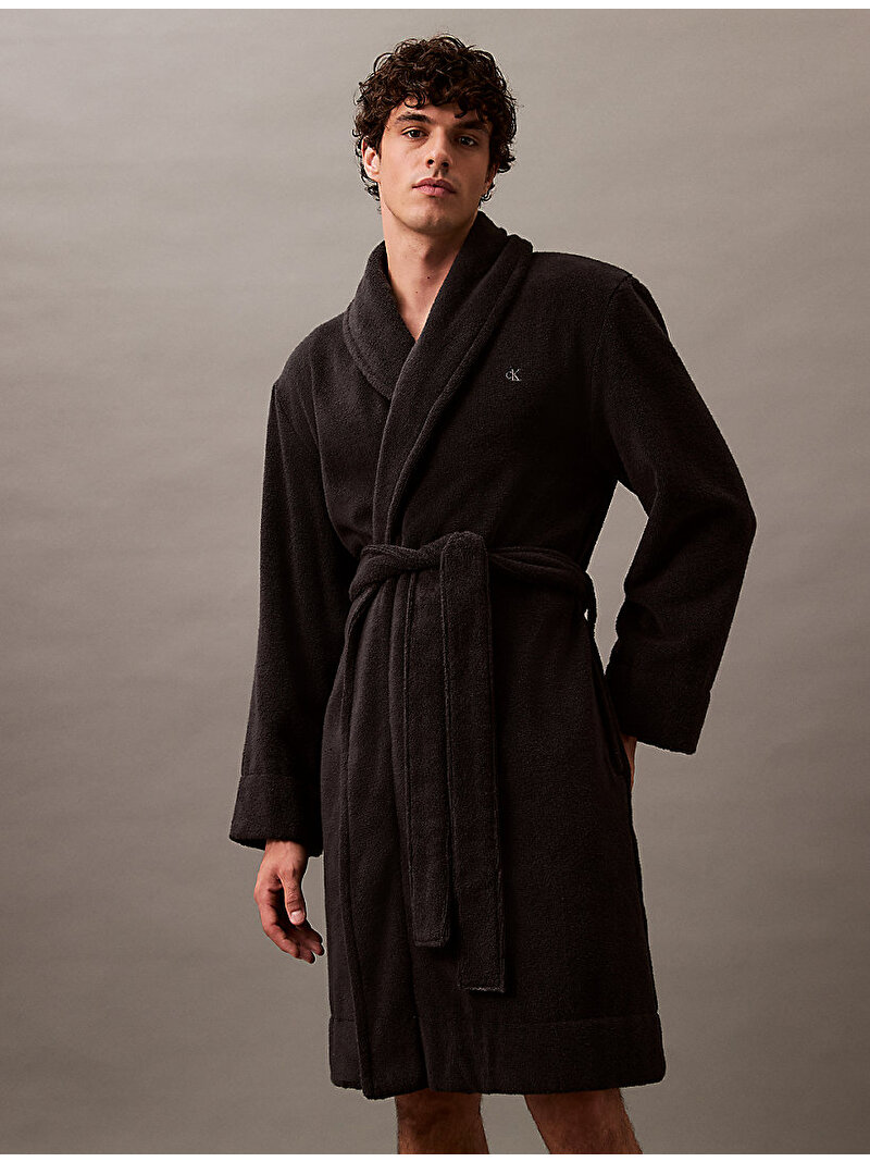 Yumuşak pamuklu terry kumaştan üretilmiş, klasik şal siluetiyle tasarlanmış bu bornozla Calvin tarzında rahatlayın ve gevşeyin.