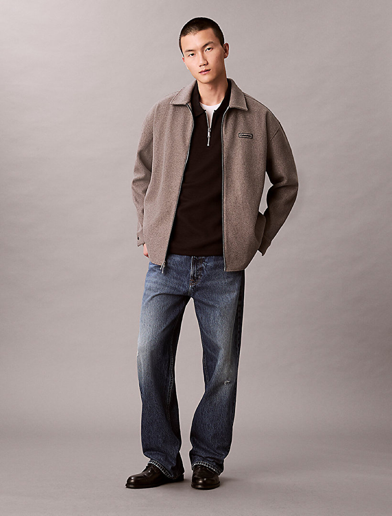 - düz örgü yaka ve ön fermuar