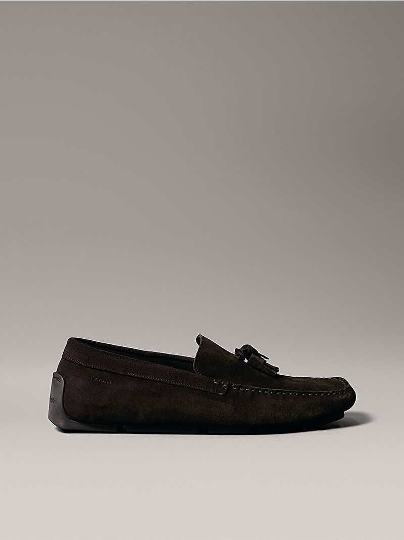 Klasik tasarımdan ilham alan bu sürüş ayakkabısı, zamansız mokasen siluetine sahip zengin süetten üretilmiş olup püskül ve dikişli kare burun detaylarıyla tamamlanıyor