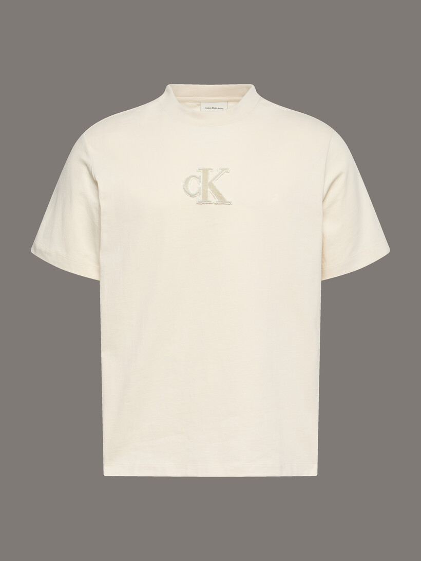 Yumuşak dokulu kadife tonal monogram, logolu günlük tişörte lüks bir dokunuş katıyor.