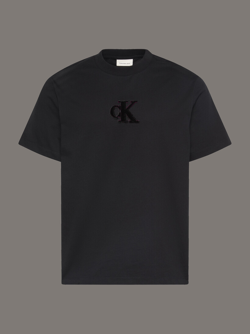 Yumuşak dokulu kadife tonal monogram, logolu günlük tişörte lüks bir dokunuş katıyor.