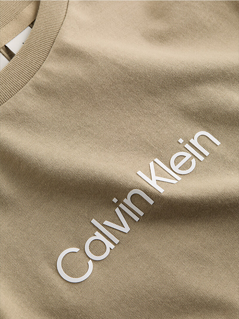 - göğüste kabartmalı Calvin Klein logo yazısı