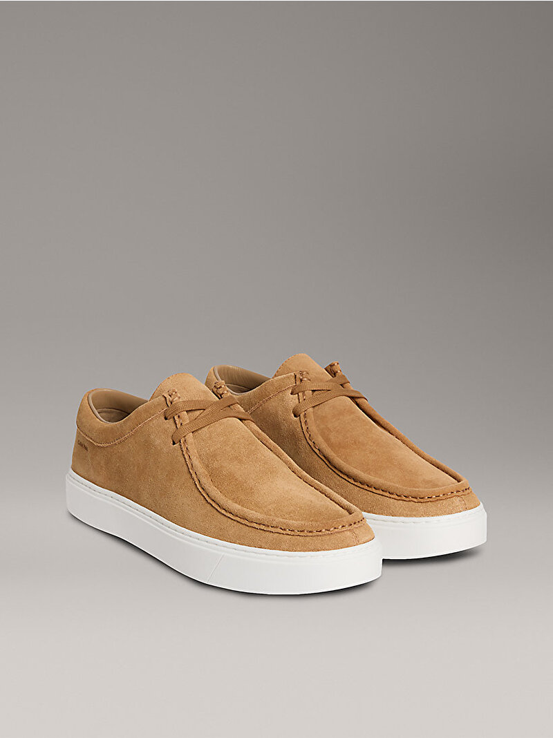 Zengin süet deri malzemeden üretilen bu hibrit bağcıklı ayakkabı, klasik apron burun tasarımını modern cupsole trainer taban ile harmanlıyor. Metal uçlu monokrom bağcıklarla tamamlanmıştır.