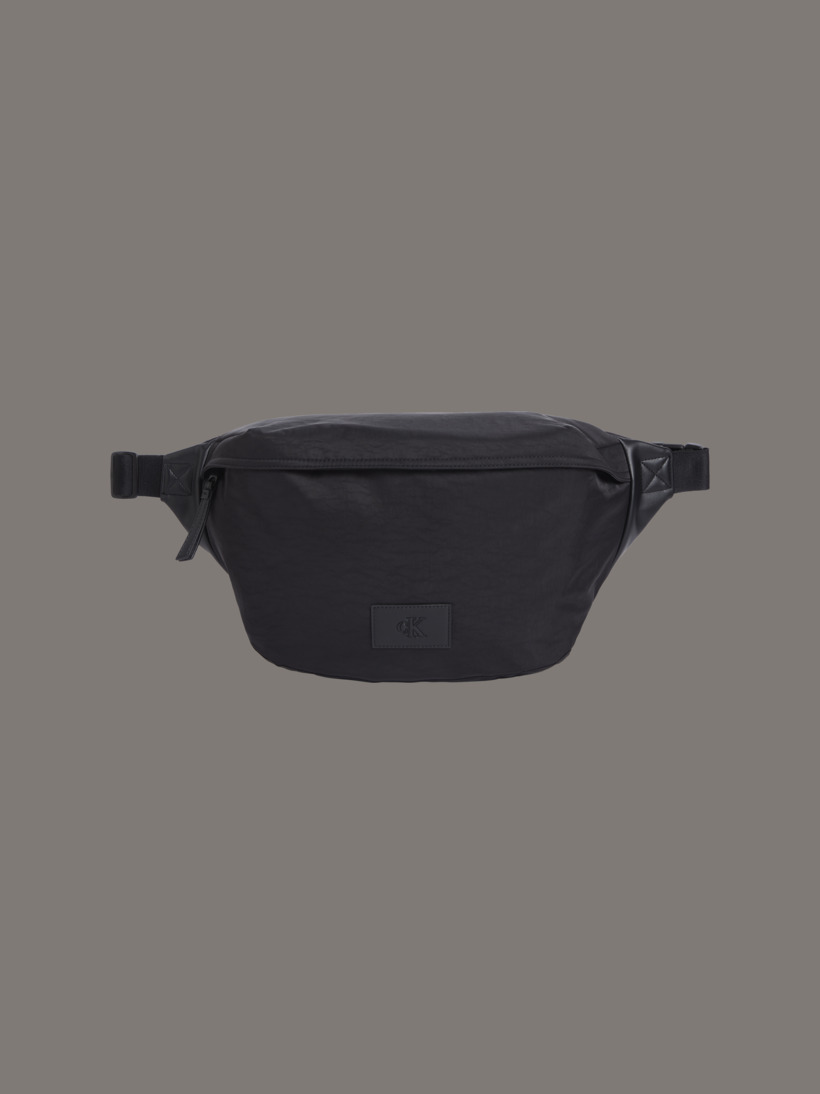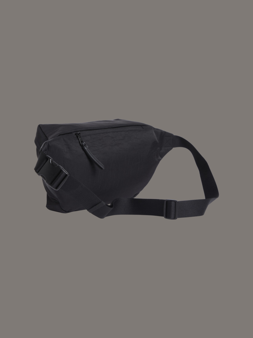 Bel çantasının dış yüzeyi, donatılar hariç %100 oranında sertifikalı geri dönüştürülmüş naylondan üretilmiştir