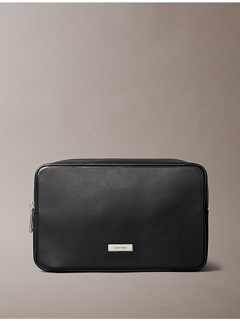 Hareketli yaşam için zarif bir seyahat gereci olan bu bakım çantası, sırçalı deriden üretilmiş olup, şık ve zahmetsiz bir düzenleme için gravürlü metal logolu plaka ile tamamlanmıştır.
