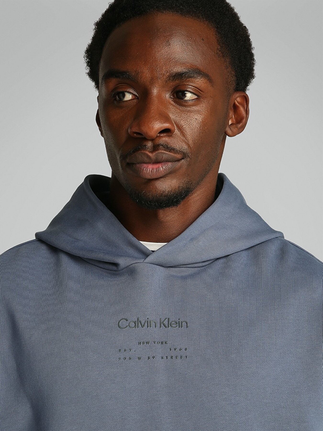 - göğüste Calvin Klein kabartmalı editoryal logo