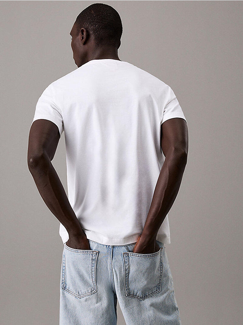 - göğüste Calvin Klein kabartmalı editoryal logo