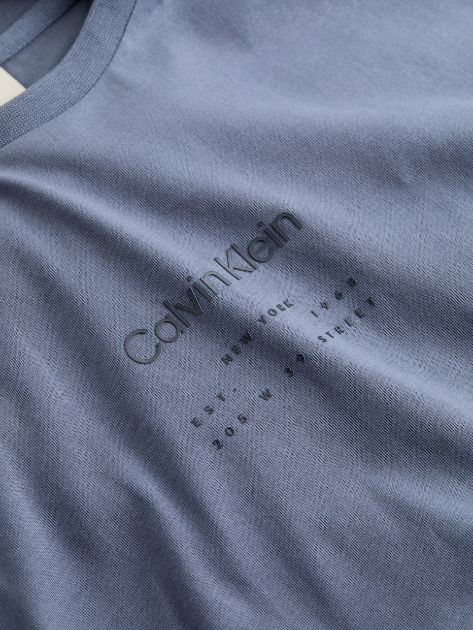 - göğüste Calvin Klein kabartmalı editoryal logo