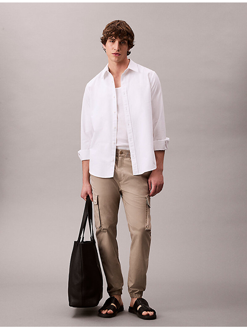 - bacak üzerinde Calvin Klein monogramlı rozet
