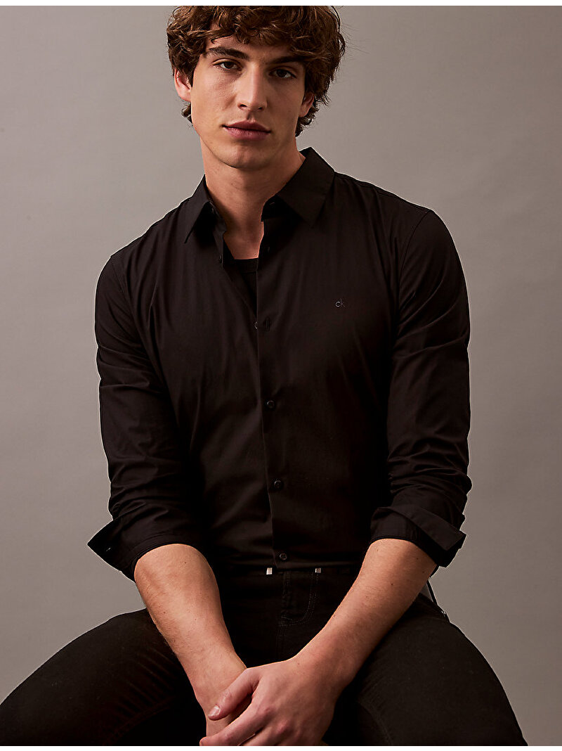 erkek solid stretch slim gömlek