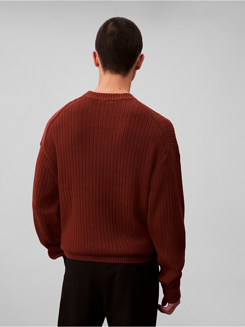 Bir klasiğin dokulu bir yorumu olan bu kazak, dikey ribanalı bir desene sahip olup saf, nefes alabilen pamuktan üretilmiştir.