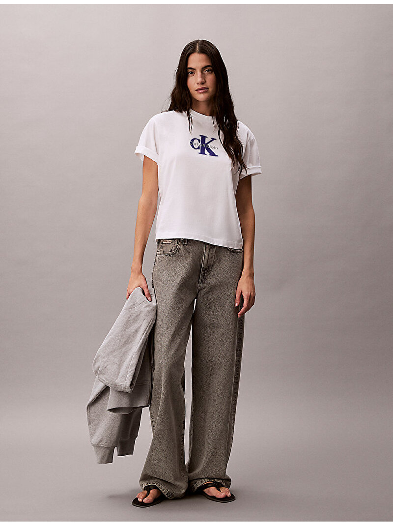 - göğüste Calvin Klein grafik logo baskısı