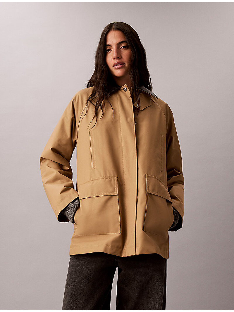 Moda ve işlevsellik; fonksiyonel cepler ve şık, deri görünümlü bir yaka ile tasarlanan bu yumuşak dimi cekette buluşuyor.