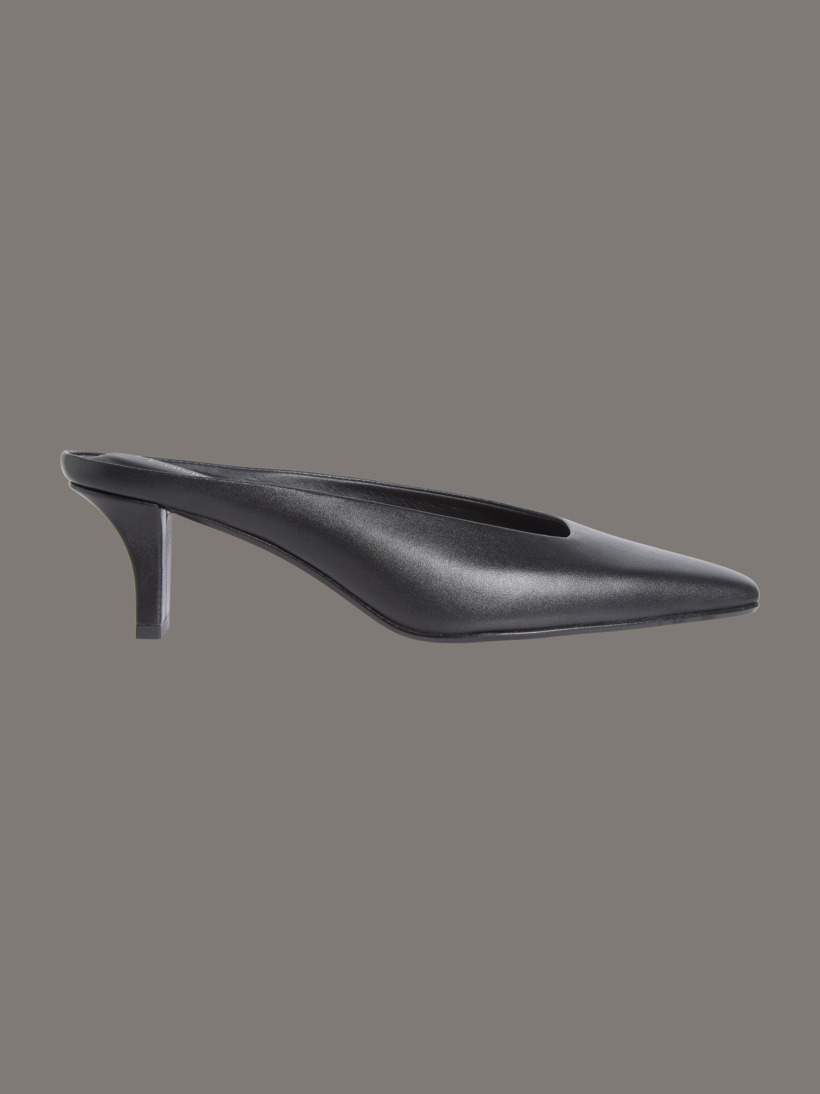Yumuşak deri kullanılarak üretilen bu şık müle terlik, hem zarif bir görünüm hem de konfor sunar. Yastıklı bir tabanlık ve kavisli kedi topuk tasarımıyla gündüzden geceye zahmetsizce bir kullanım sağlıyor.