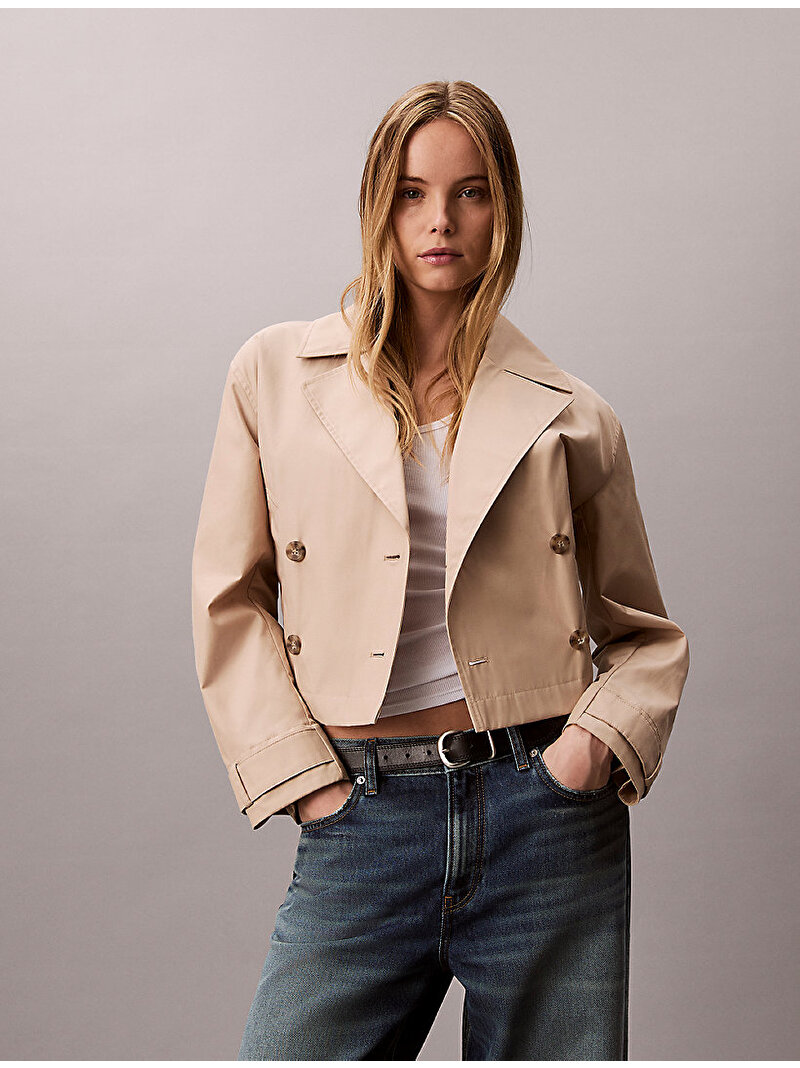 kadın kısa cotton trençkot