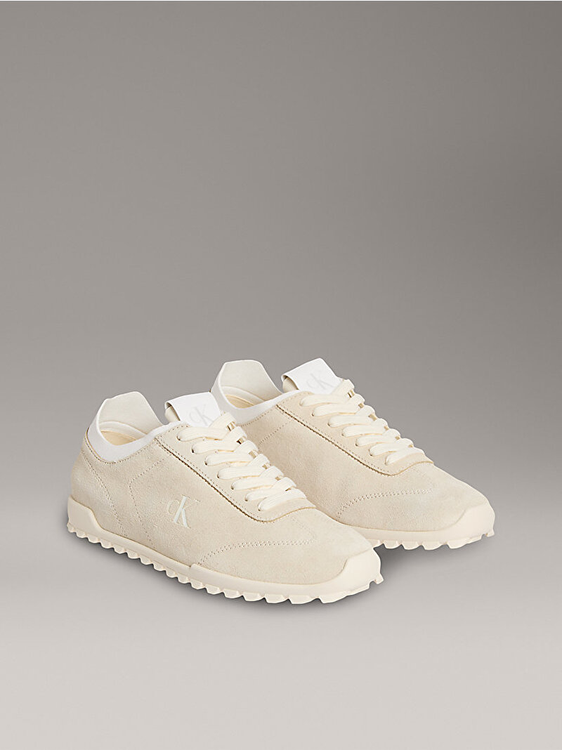 Bu trainers spor ayakkabı, dişli kauçuk dış tabanı ve ham kesim yakasıyla retro koşu ayakkabısı silüetine modern, dekonstrüktif bir estetik getiriyor.