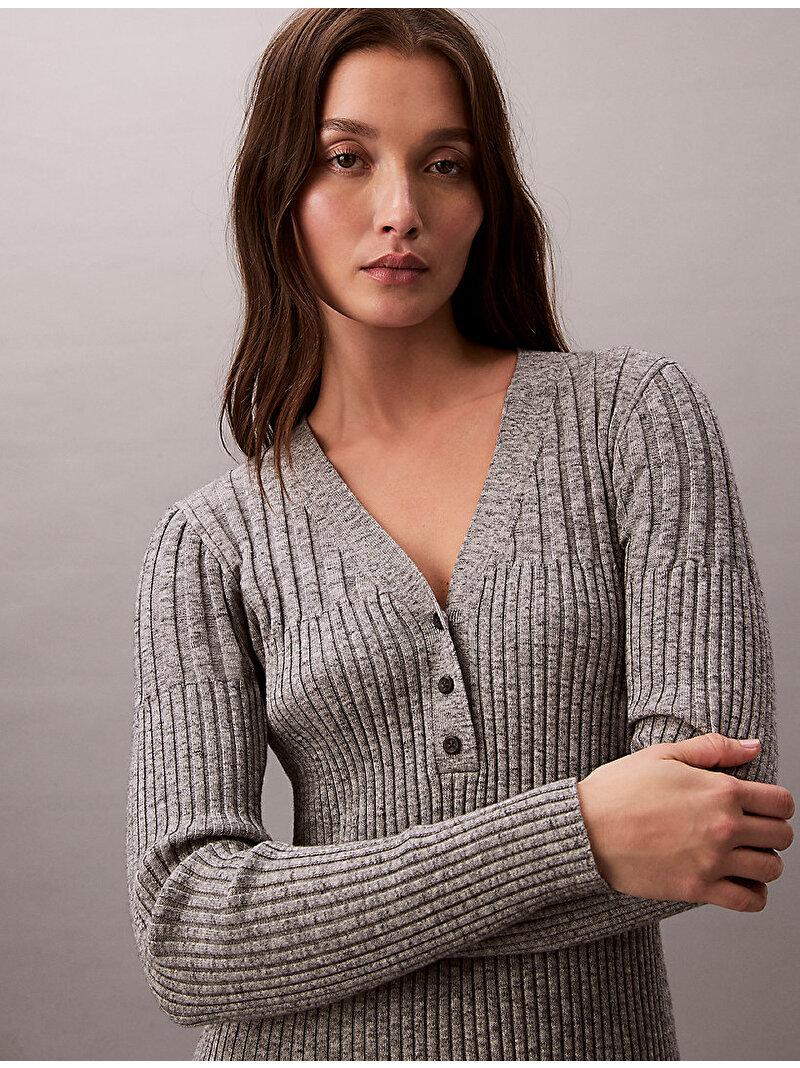 kadın mouline rib vneck elbise