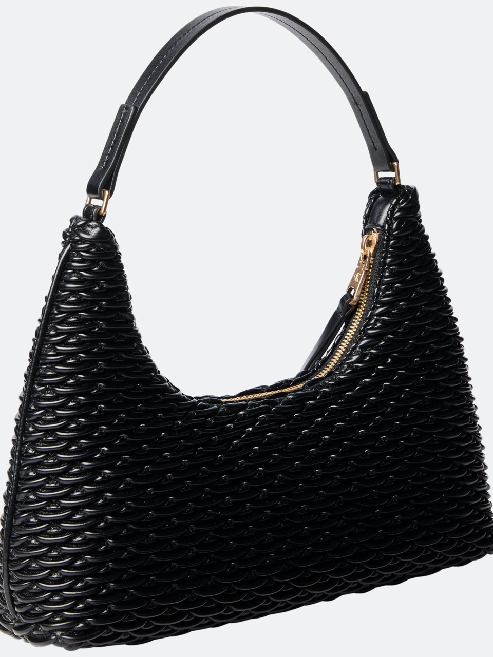 Seçkin bir günlük parça – yumuşak pileli suni deri bu çanta, modern ve imza bir dokunuş için şık silindirik logo çubuk ile tamamlanıyor. Zahmetsiz düzenleme için bir iç yan cep ile tasarlandı.