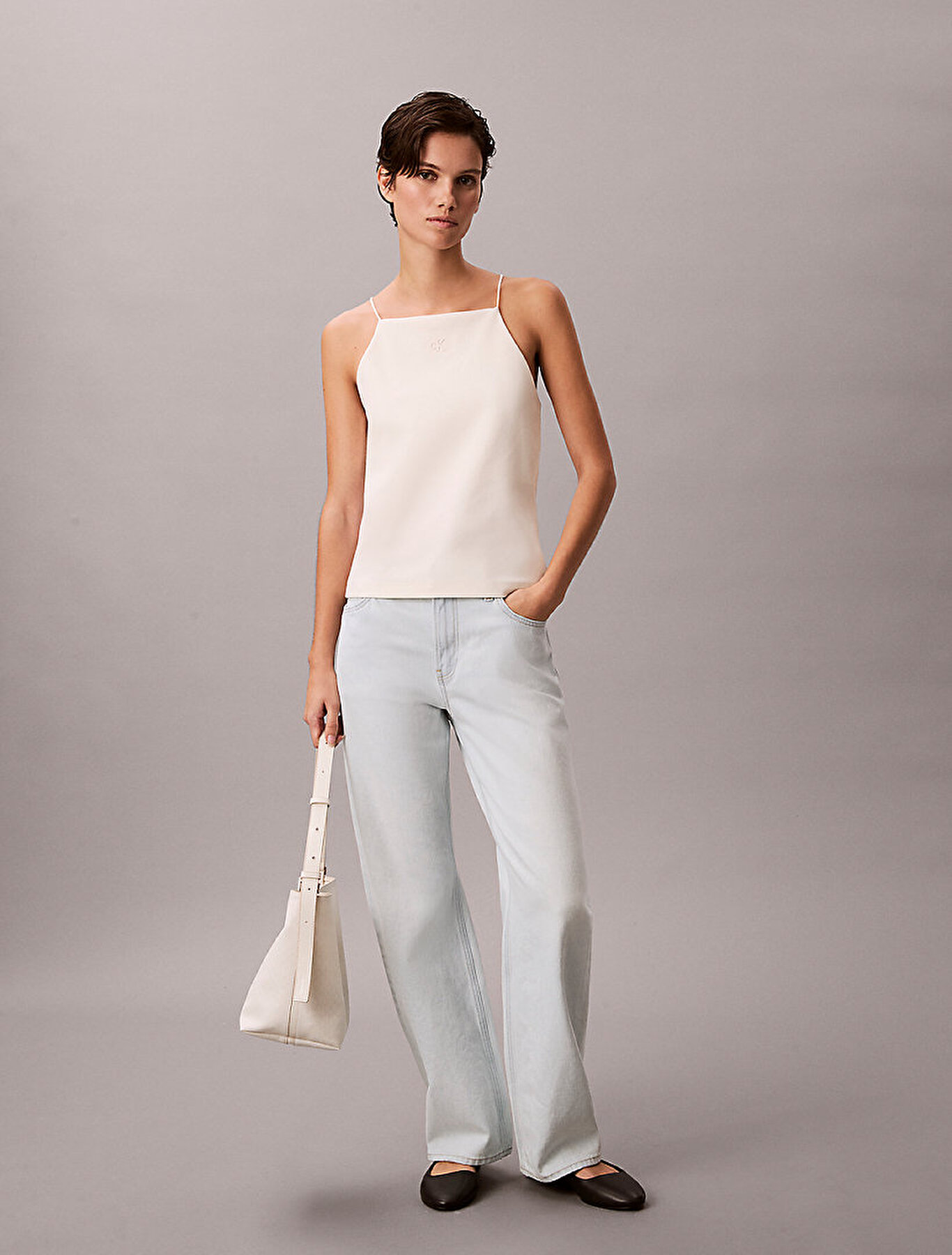 - göğüste kabartmalı Calvin Klein logosu