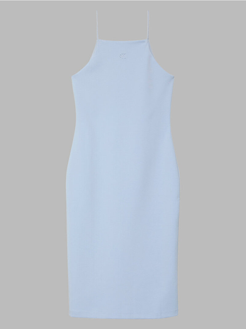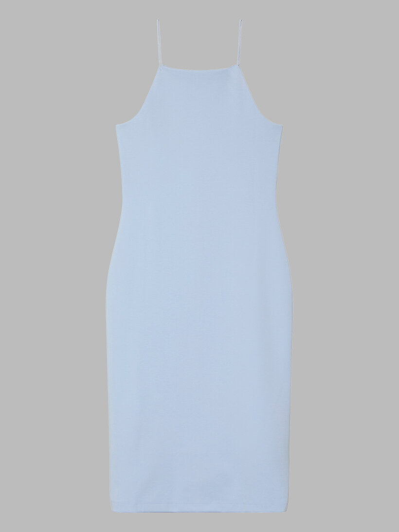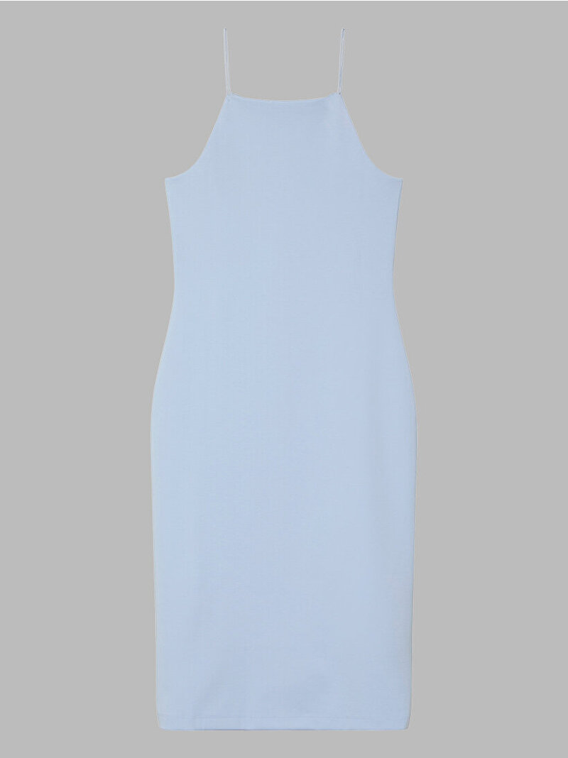 Bu elbise; kare yakası, ince askıları ve terzi işi kesimiyle olduğu kadar zarif bir sadeliğe sahip.