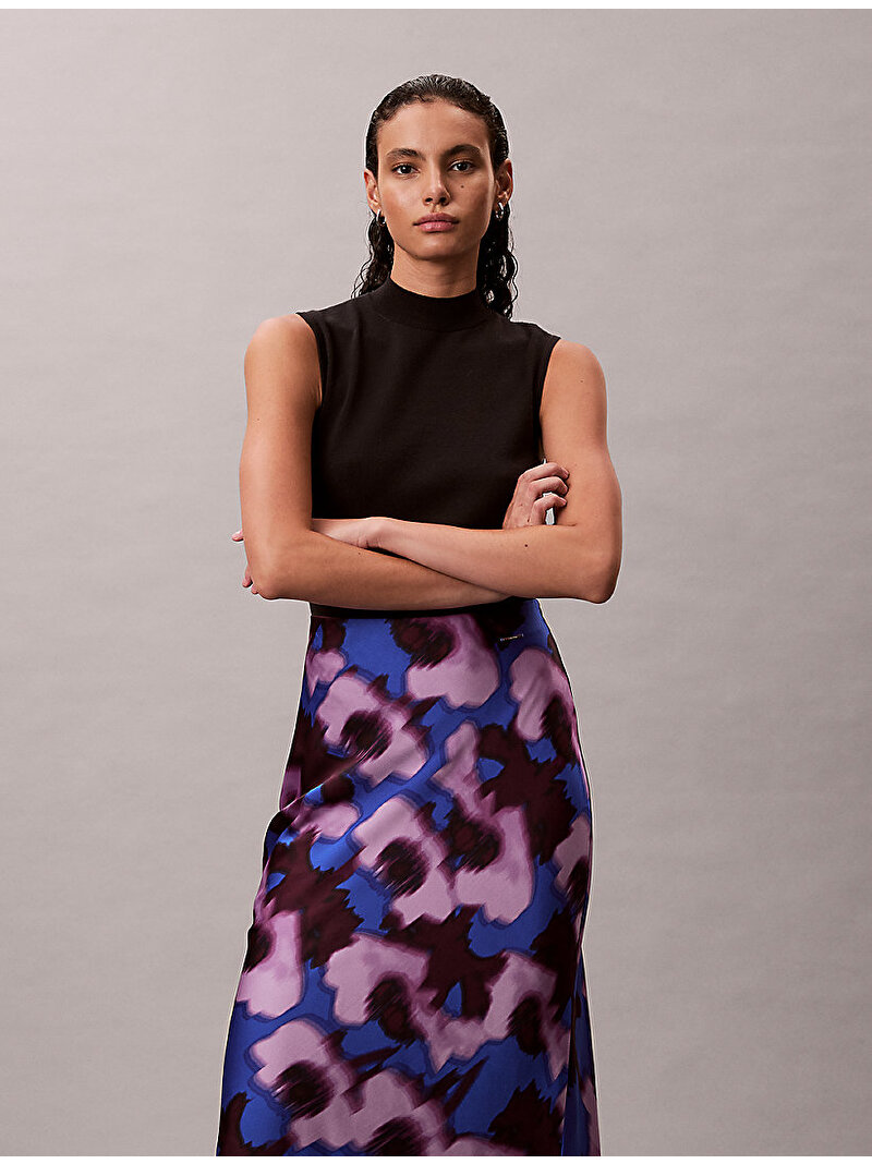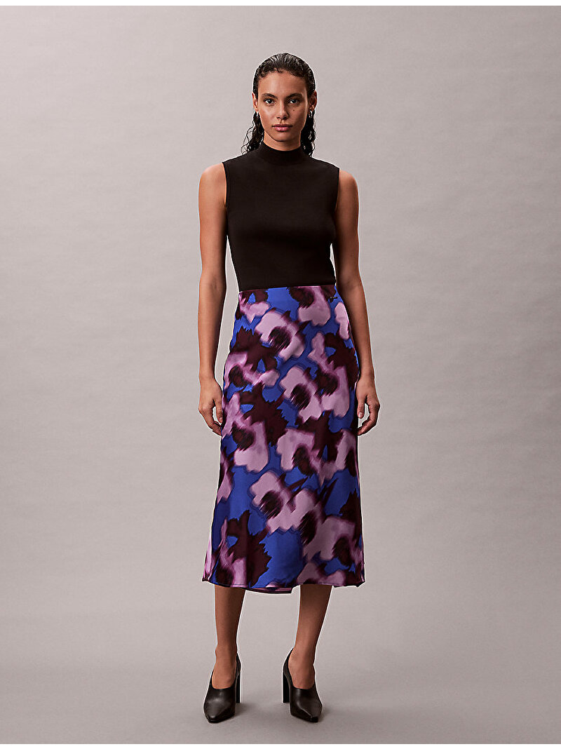 kadın printed satin midi etek