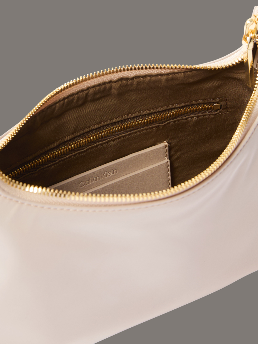 Omuz çantasının dış yüzeyi, donatılar hariç %100 oranında geri dönüştürülmüş polyesterden üretilmiştir.