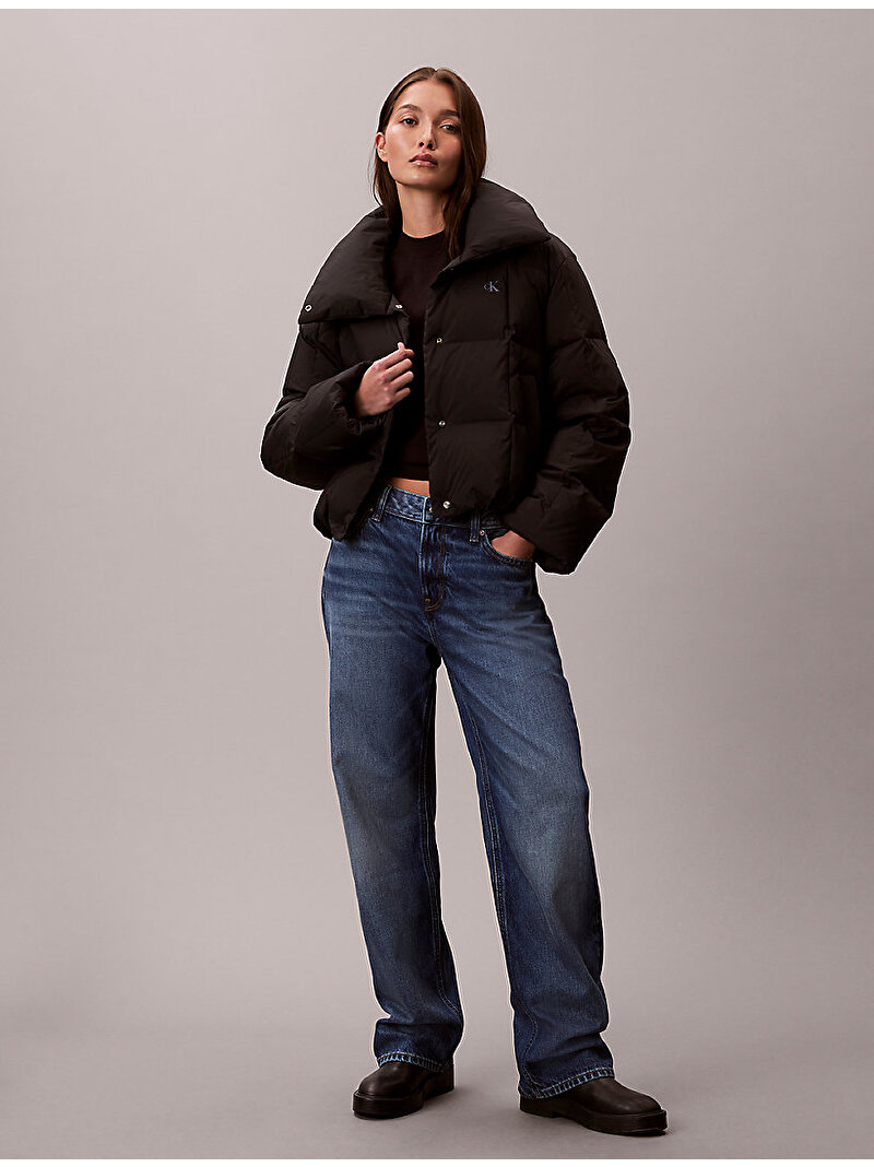Büyük boy yaka, hava koşullarına dayanıklı dış yüzey kumaşı ve yüksek kaz tüyü yalıtımla hazırlanmış bu şişme montun rahatlığına katkıda bulunuyor.
