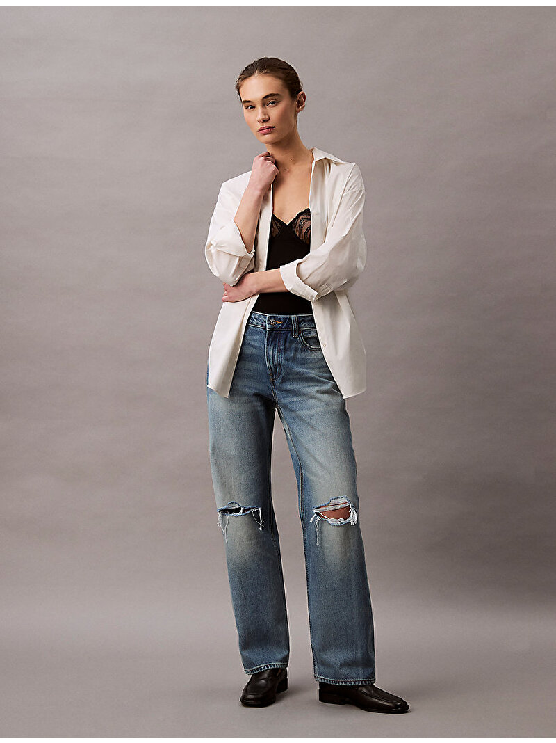 90'lardan ilham alan ikonik jean pantolonumuz, rahat ve düz kesimiyle kalçaya tam oturacak şekilde tasarlanmıştır.