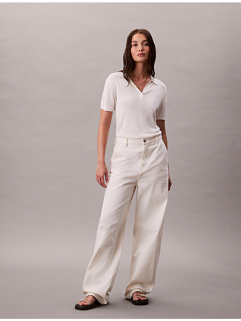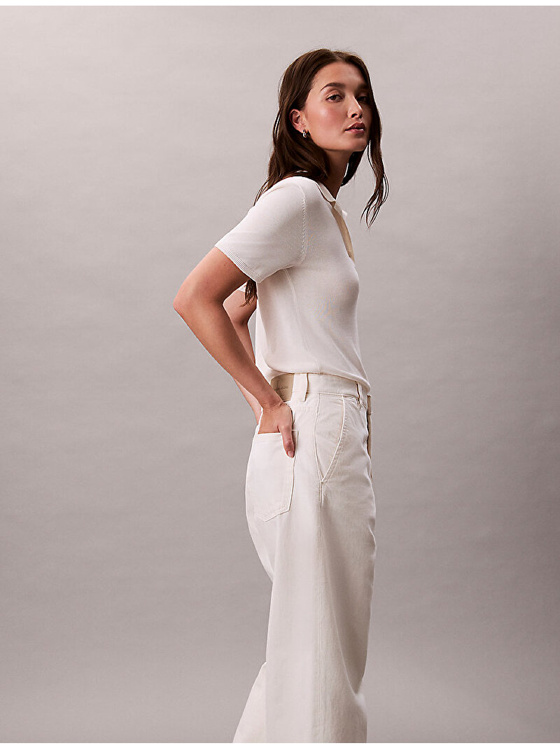 Rahat barrel jean pantolon, klasik pantolon kesimiyle tasarlanmış olup, yan dikiş cepleri ve bacakları uzun gösteren ütü izli detaylara sahiptir.