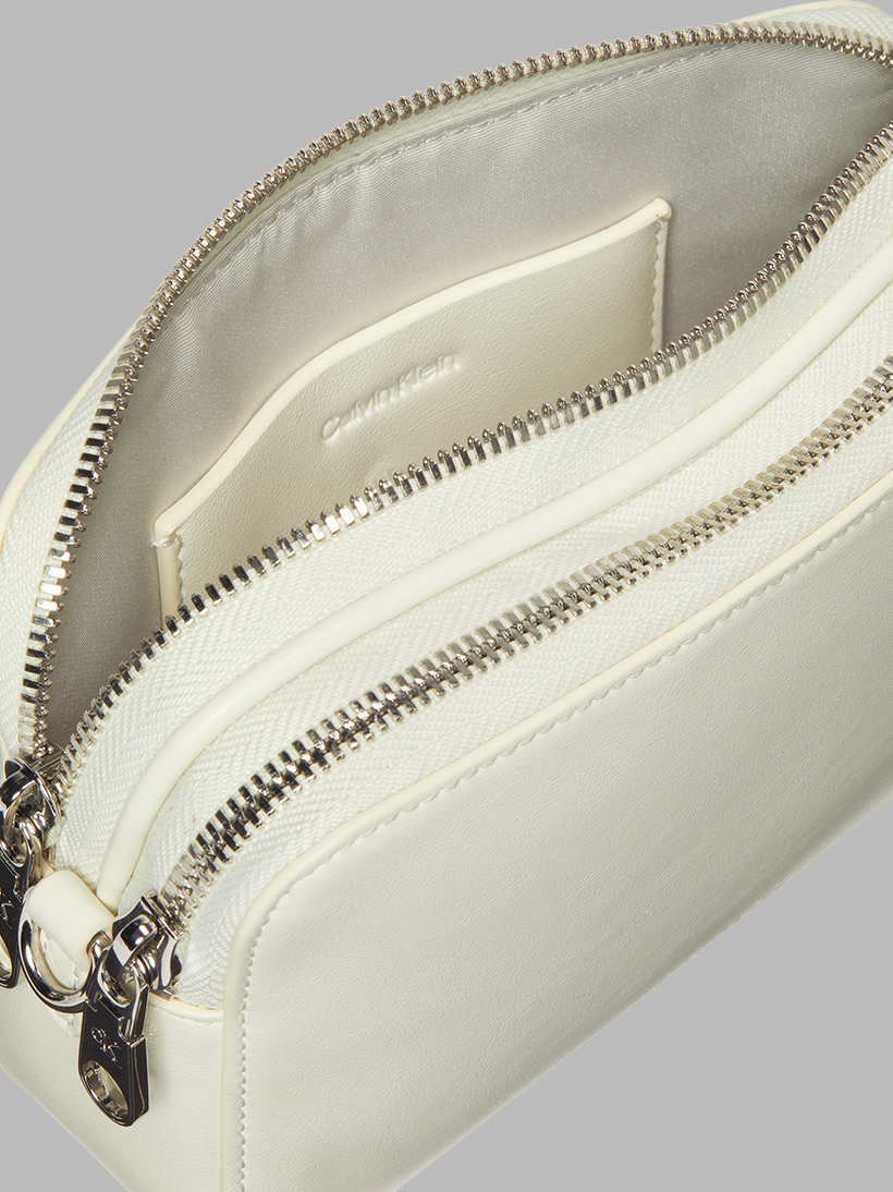 Pürüzsüz suni deriden üretilen bu yapılandırılmış çanta, zarif tasarımı özenle optimize edilmiş bir iç düzenle birleştiriyor. İmzalı bir dokunuş için jakarlı Calvin Klein dokuma ile tamamlanıyor.