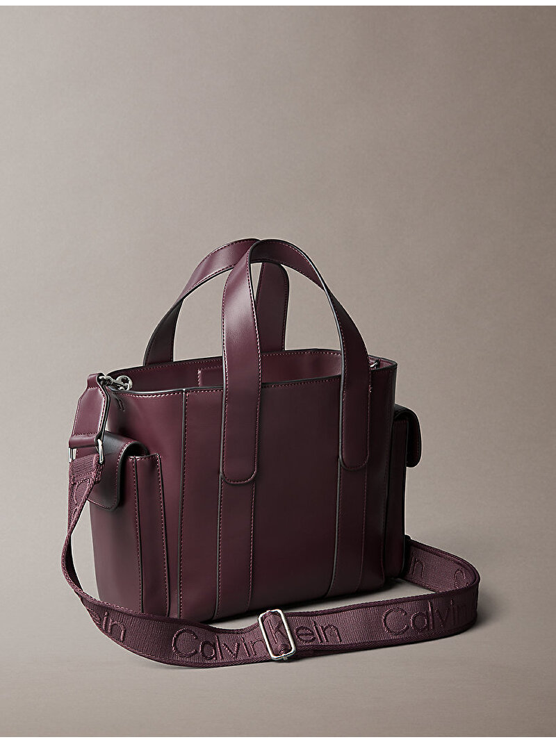 Pürüzsüz suni deriden üretilen bu yapılandırılmış çanta, zarif tasarımı özenle optimize edilmiş bir iç düzenle birleştiriyor. İmzalı bir dokunuş için jakarlı Calvin Klein dokuma ile tamamlanıyor.