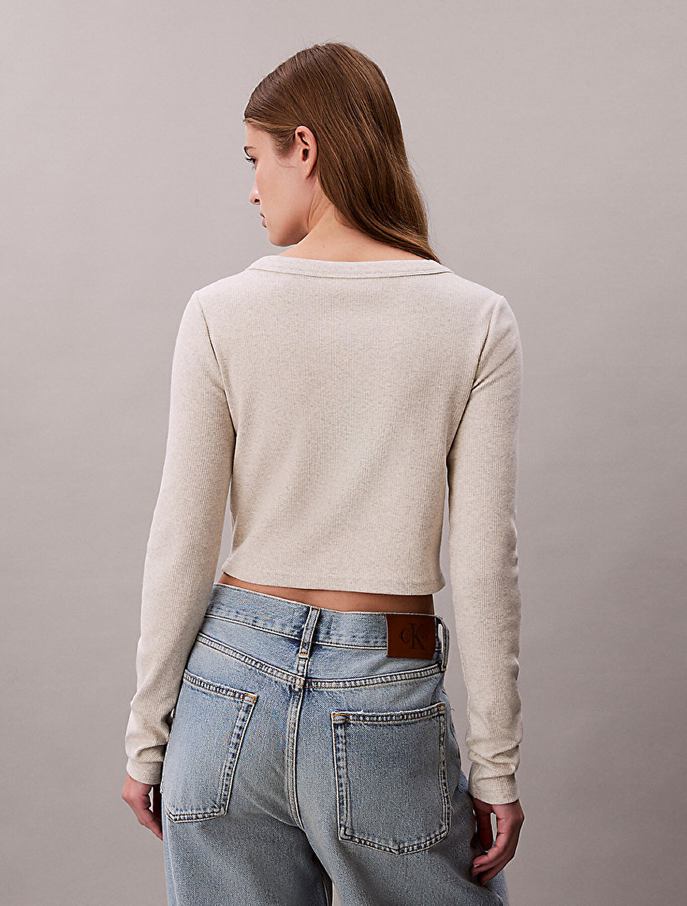 - etek ucunda Calvin Klein monogramlı rozet